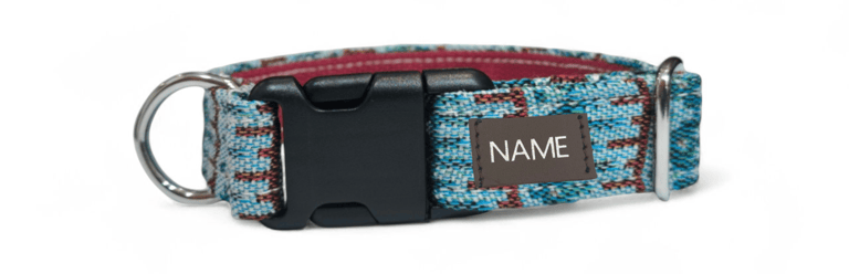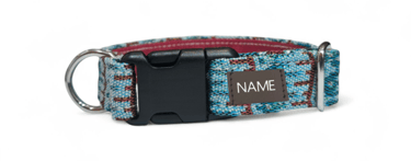 Ejemplo de collar de tela grabado con nombre (se puede poner en todos los diseños), escríbenos