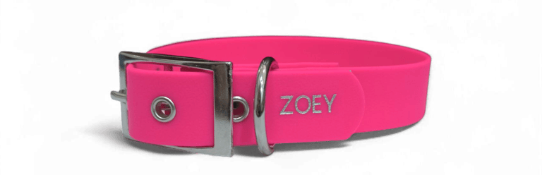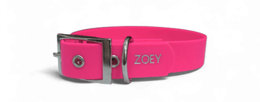 Ejemplo de collar impermeable grabado con nombre (se puede poner en todos los diseños), escríbenos